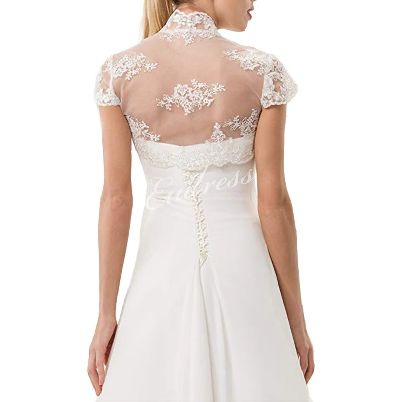2016 Lace Appliques Wrap Cap Sleeves High Neck Plus Size Bridal Lace Jacket Wedding Shrug White Ivory Bolero Buy Lace Wedding Dresses High Neck Wedding Dresses Lace Backless Cap Sleeve Bridal Beaded Lace Appliques Lace Shrug For Wedding Dress