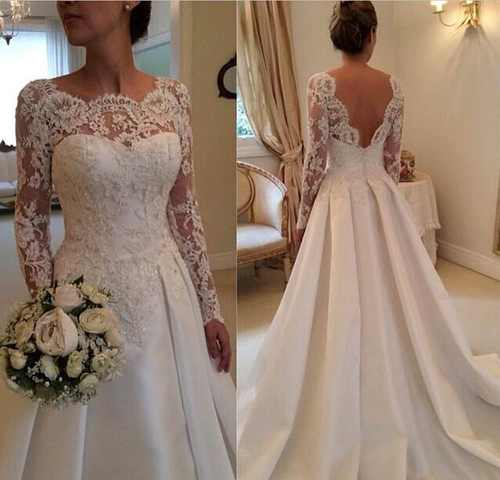 Discount 2020 New Long Sleeve Wedding Dresses Backless Deep V Neck Lace Sleeve Wedding Dress Backless