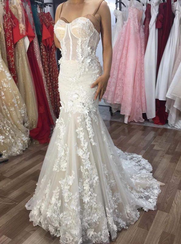 M45398 Romantic V Neck Trumpet Style Wedding Dresses Mermaid Lace Lace Style Wedding Dresses