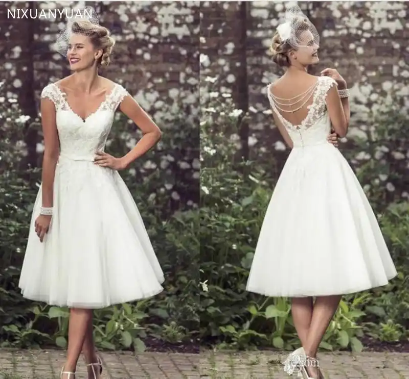 Vintage 1950 S Short Lace Wedding Dresses Half Sleeve Tea Length Lace Tea Length Wedding Dresses