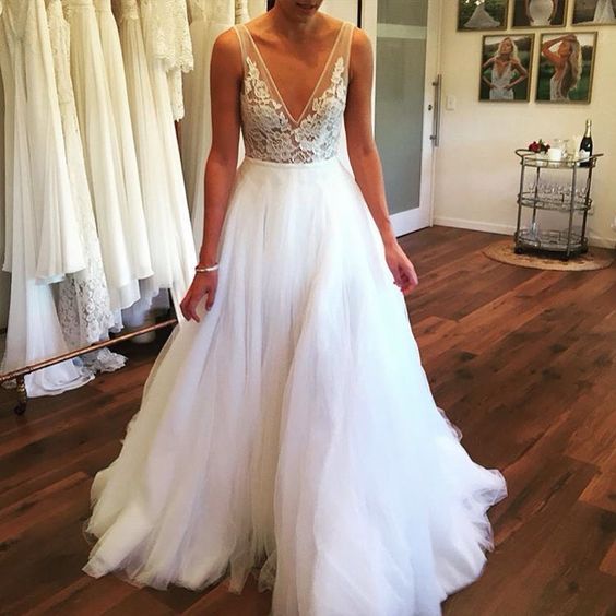 Hot Discount B3c6f1 Eightale Elegant Wedding Dresses Boho O Lace Top Tulle Skirt Wedding Dress