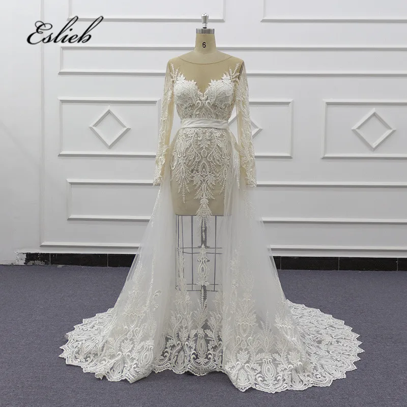 Eslieb High Quality Custom Made Lace Trim Wedding Dress 2020 Lace Trim Wedding Dress