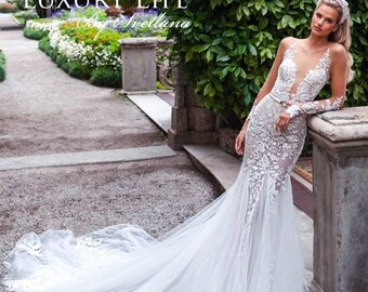 Jw16010 Sheer Top Long Sleeves Lace Trumpet Wedding Dress 2296267 Lace Trumpet Dress Wedding
