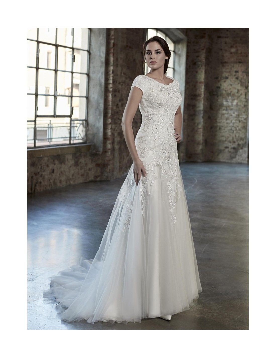 Christina Wu 15623 Cap Sleeves Trumpet Wedding Dress Lace Trumpet Wedding Dress With Sleeves