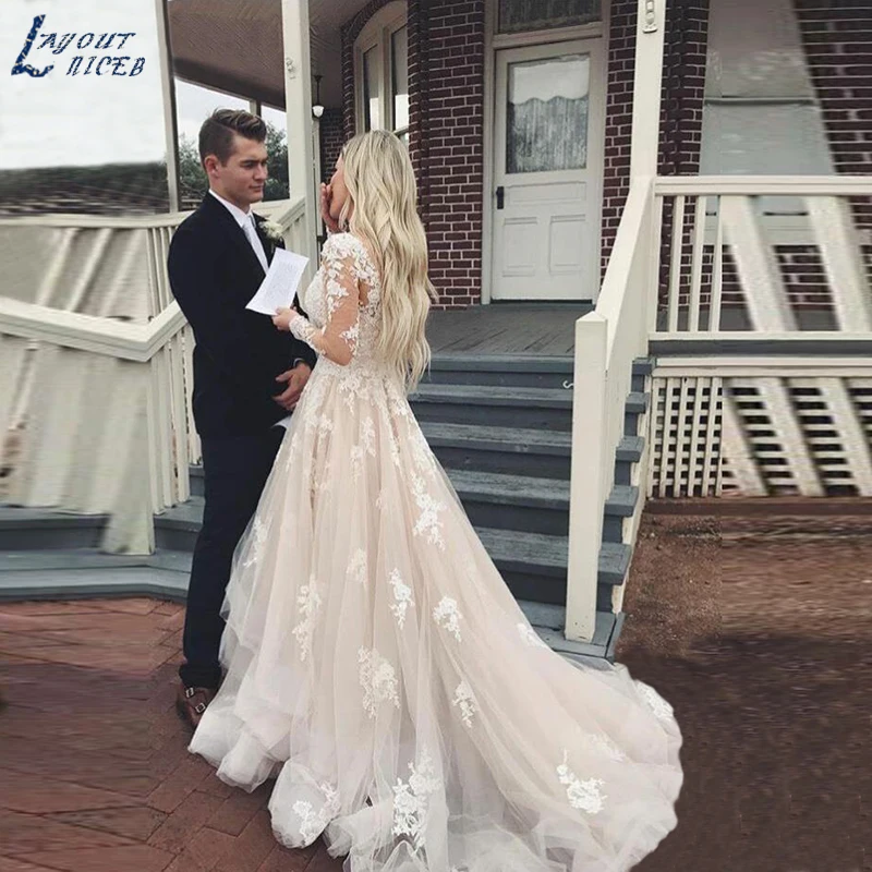 V Neck Wedding Dresses A Line Boho Wedding Dress Destination 2020 Lace Tulle Wedding Dress