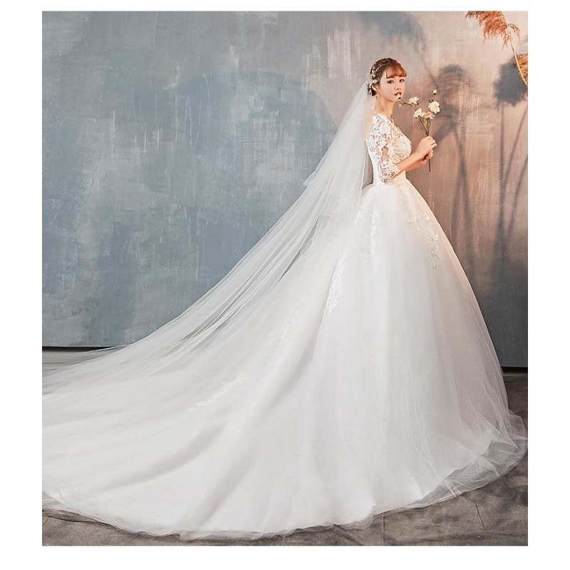 2019 Luxury Wedding Dresses A Line Floor Length Long Sleeves Lace Lace Up Wedding Dress With Sleeves
