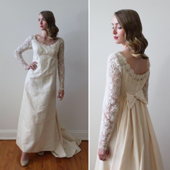 Vintage 1960s Long Lace Sleeve Empire Waist Bridal Gown With Etsy Lace Vintage Empire Waist Wedding Dress