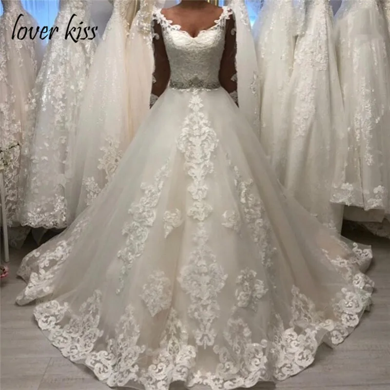 Lover Kiss Vestido De Noiva 2020 Wedding Dresses Long Sleeves V Lace Wedding Dress Corset Back