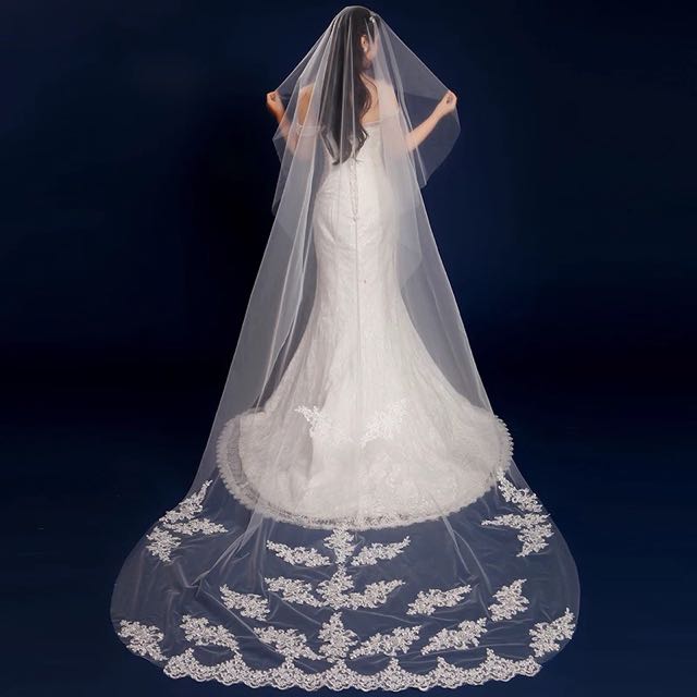 1 Layer White Cathedral Length Lace Edge Bride Wedding Bridal Lace Wedding Dress Long Veil