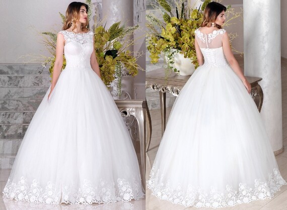 Floral Lace Wedding Dress With Lace Corset And Tulle Skirt Etsy Lace Wedding Dress With Corset