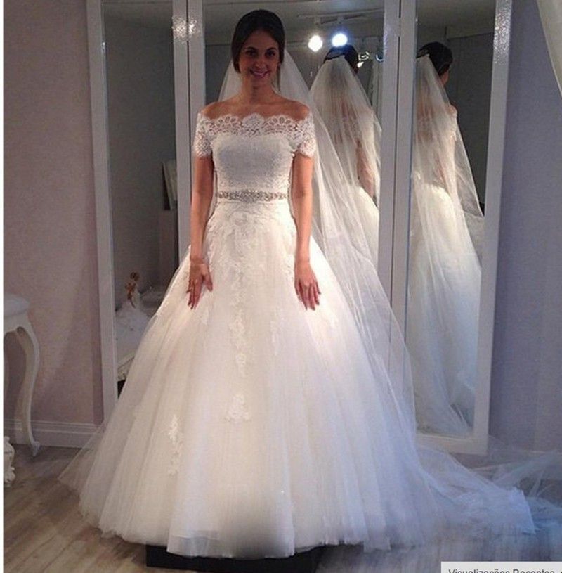 High Quality Cheap A Line Lace Beach Wedding Dress White Long Lace Wedding Dress With Diamond Belt