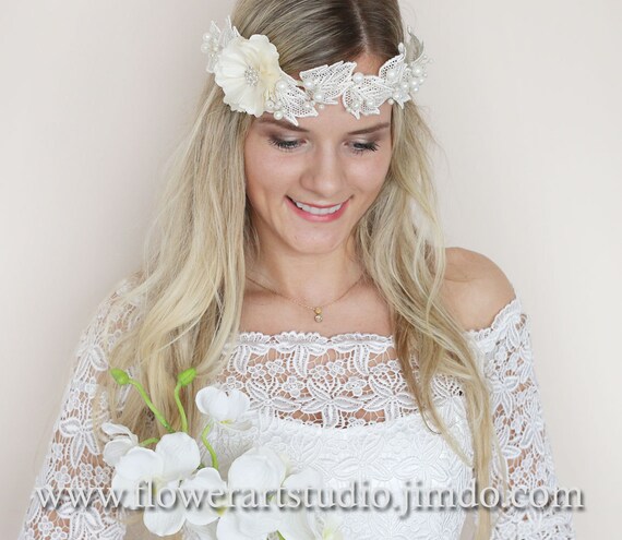 Relaxed Vintage Boho Wedding Inspiration Bride Dress Flower Crown Lace Wedding Dress With Flower Crown