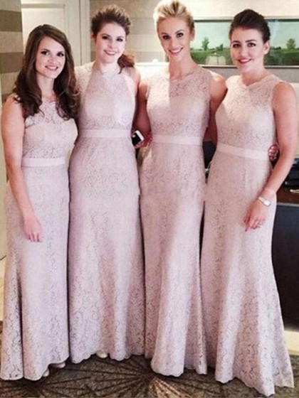 S418 Column Lace Beautiful Bridesmaid Dresses Light Pink Lace Wedding Dress With Lace Bridesmaids