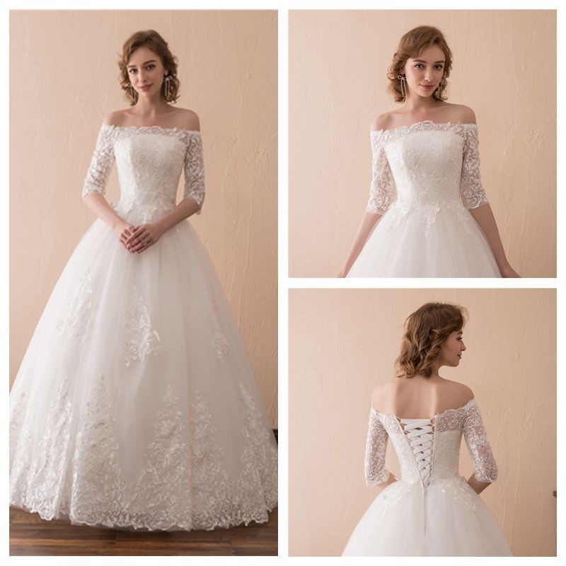 Discount 2019 White Ivory Wedding Dress Bridal Gown Off Shoulder Appliques Lace Wedding Dresses Lace Up Back Wedding Gown Half Sleeve Indian Wedding Dresses Long Sleeve Wedding Dresses From Mirusponsawedding 118 9 Dhgate Com Lace Wedding Dress With Lace Up Back