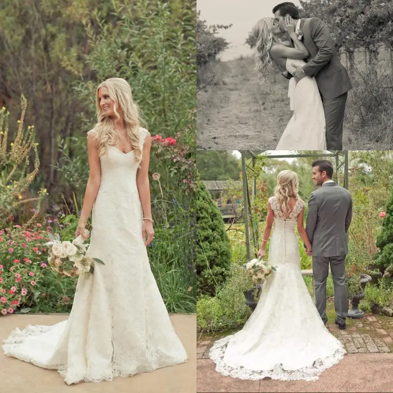 Cap Sleeves Slim A Line Sweetheart Lace Appliques Wedding Dresses Lace Wedding Dresses With Cap Sleeves