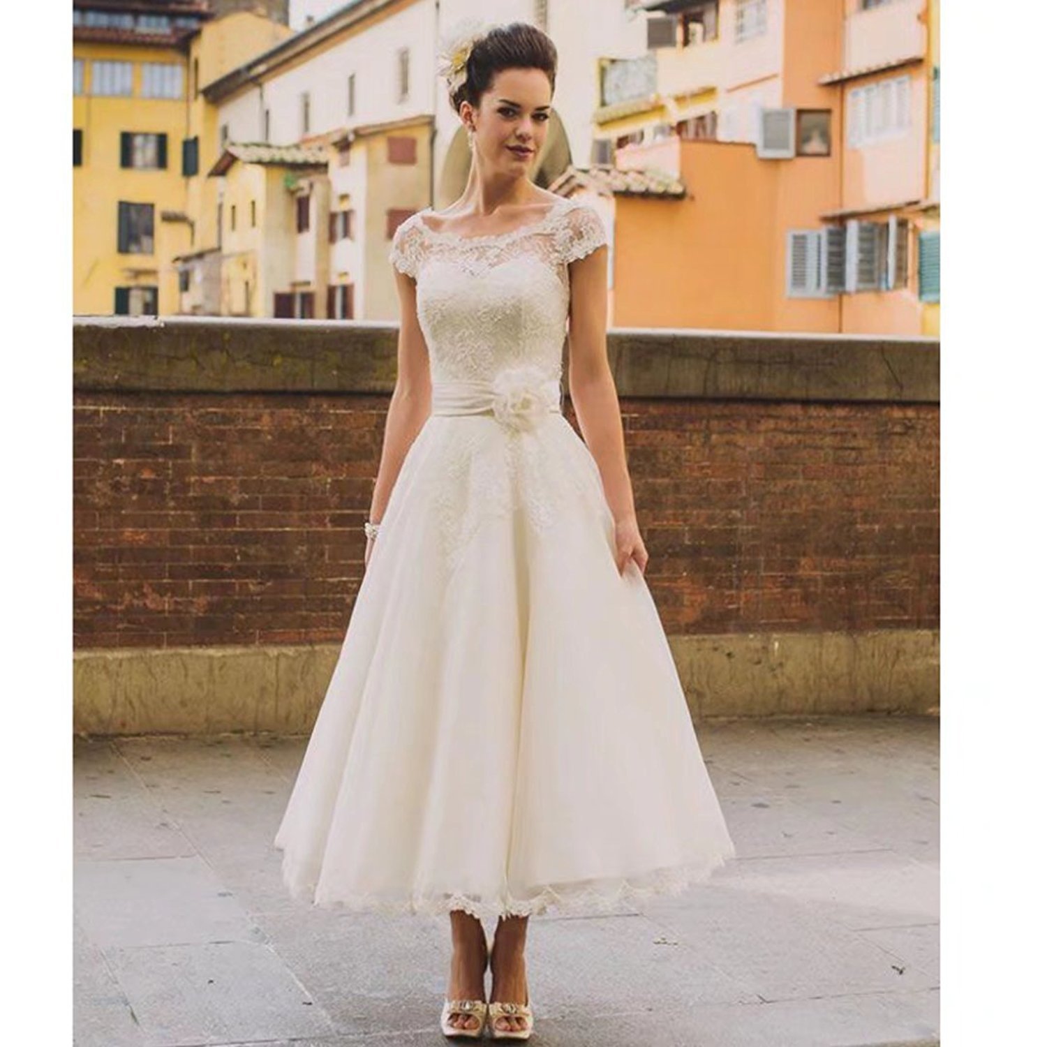 Ivory Lace Chiffon Illusion Cap Sleeve Wedding Dress Vq Lace Wedding Dresses With Cap Sleeves