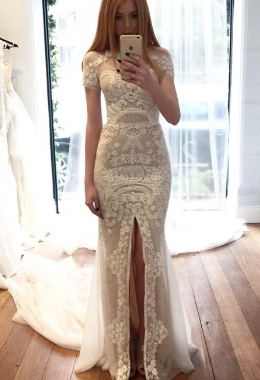 Penelope Backless Lace Wedding Dress Dreamers And Lovers Lace Wedding Dresses With Slits