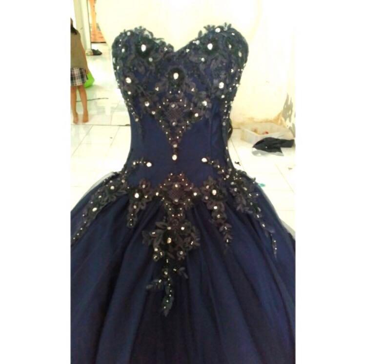 Navy Blue Lace Wedding Evening Gown Women S Fashion Clothes Lace Wedding Evening Dresses