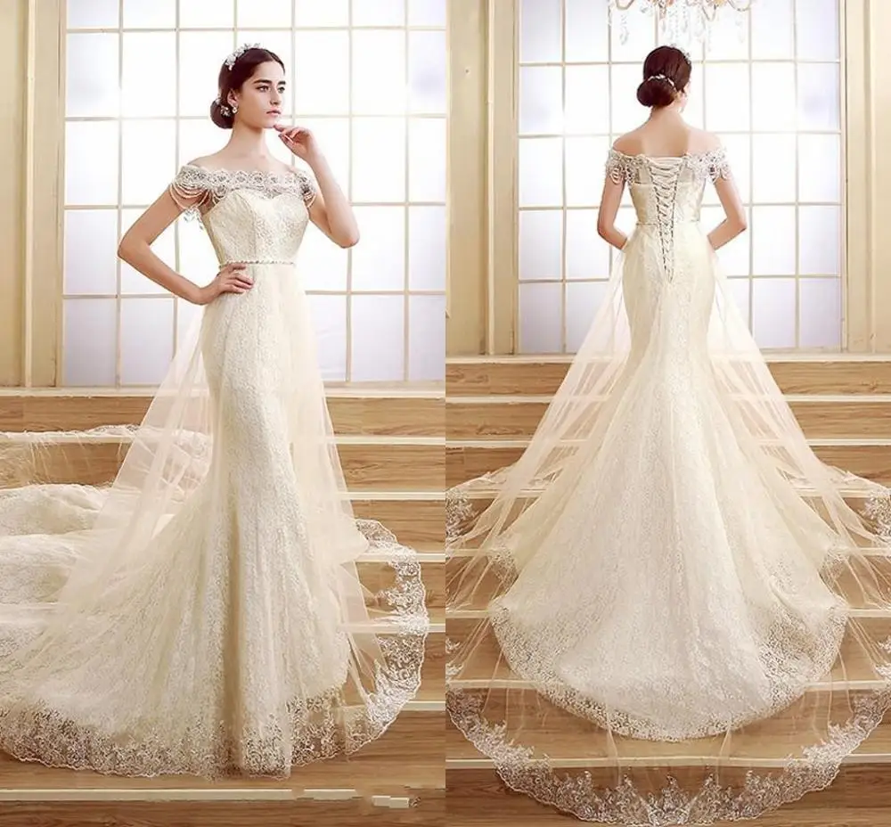 2020 Luxury Lace Wedding Dresses Mermaid Sleeveless Off Shoulder Lace Wedding Off Shoulder Wedding Dresses 2020