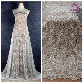 La Belleza 2019 New Heavy Beaded Lace Fabric Off White Beautiful Lace White Beautiful Wedding Dresses