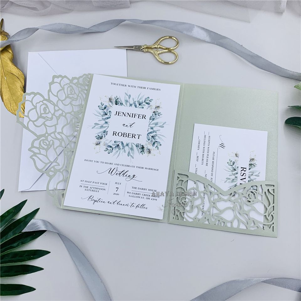 Tada Cards Llc Pop Up Wedding Invitation Pocket Folds With Laser Cut Pocket Fold Wedding Invitations