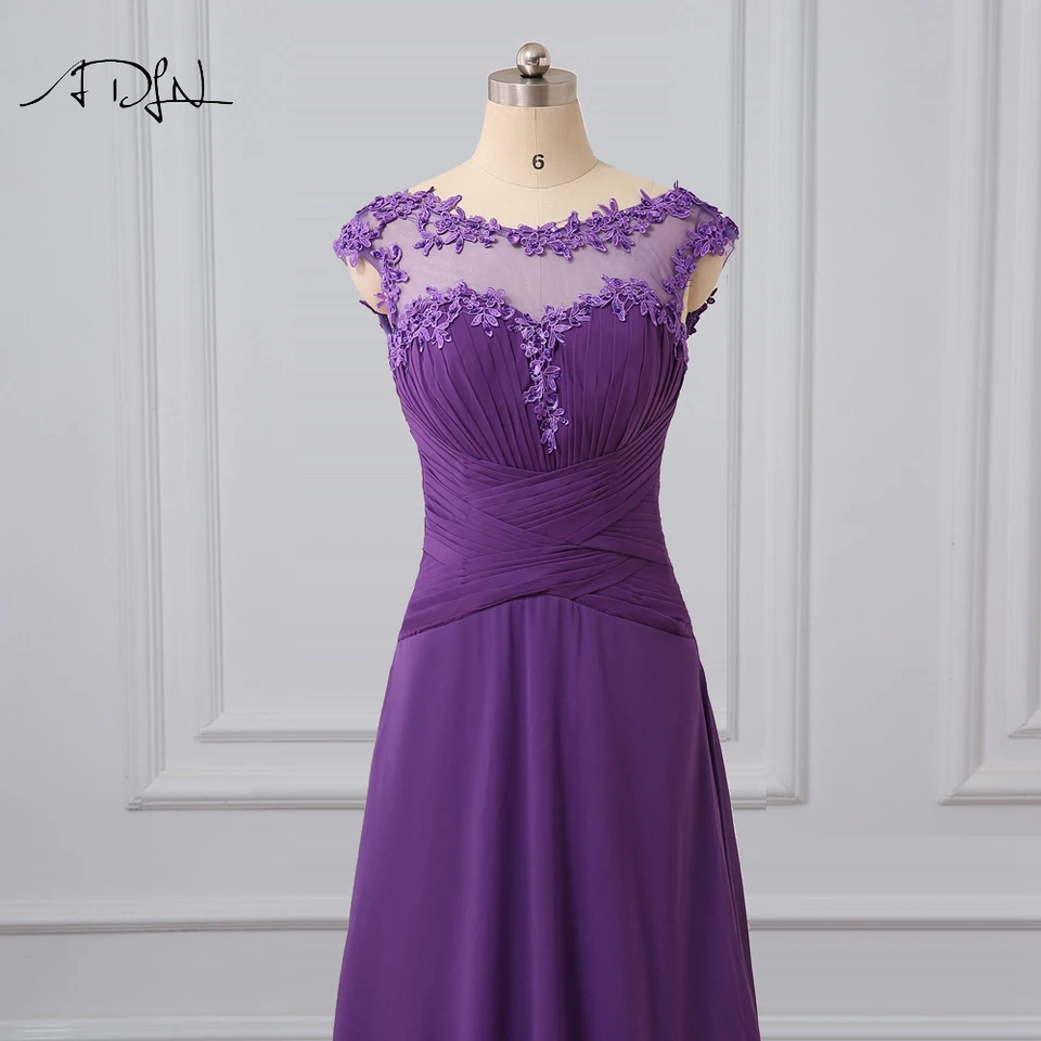 Adln Scoop Purple Bridesmaid Dress With Appliques Chiffon Long Lavender Wedding Guest Dress