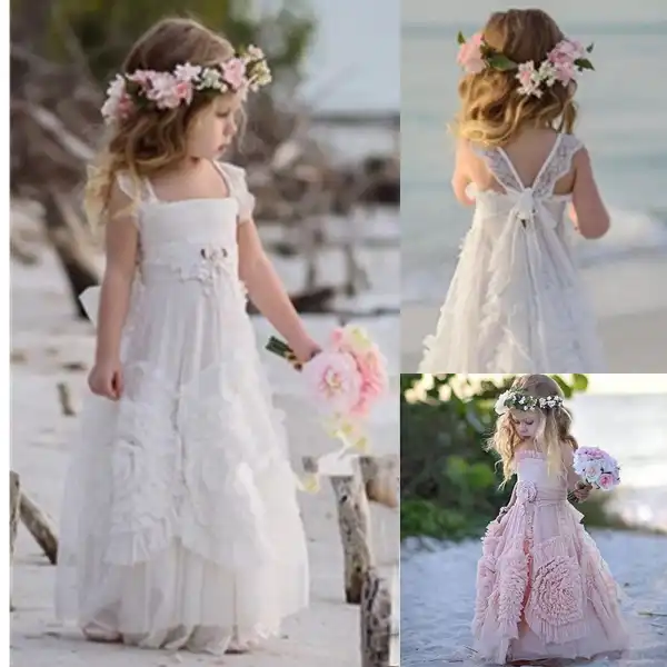 2016 Hot White Flower Girl Dresses For Weddings Lovely Lace Bow Little Girl Dresses For Weddings Cheap