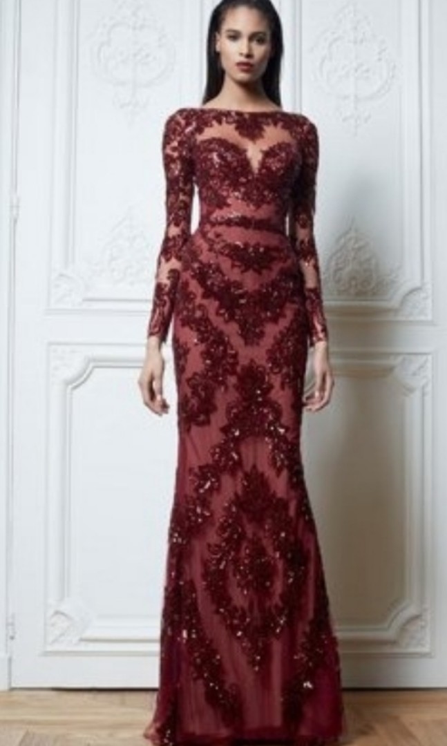 Zuhair Murad 2013 Maroon Lace Dress Engagement Wedding Function Long Dress For Wedding Function