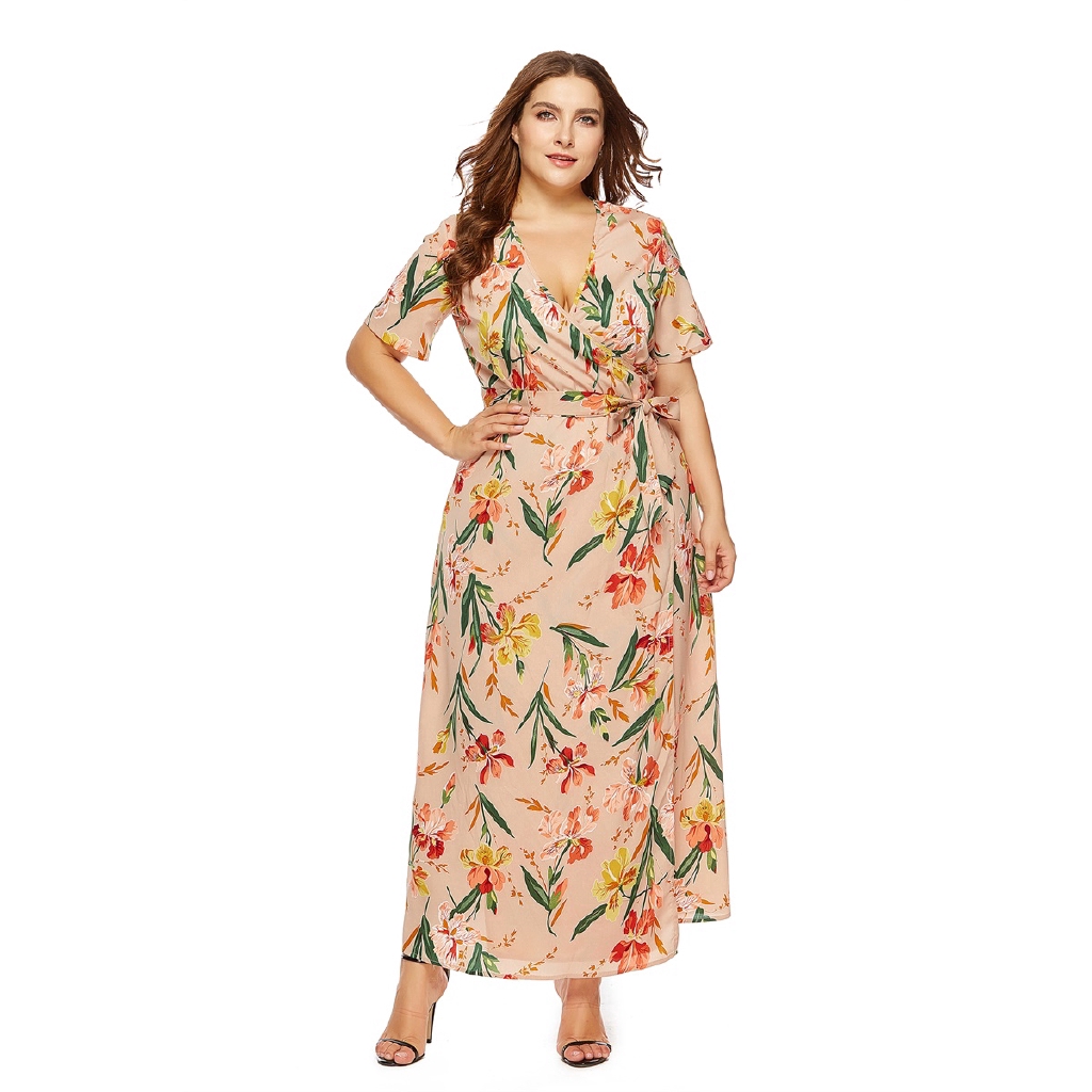 Plus Size V Neck Empire Waist Long Floral Beach Boho Bohemian Long Floral Dresses For Wedding