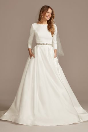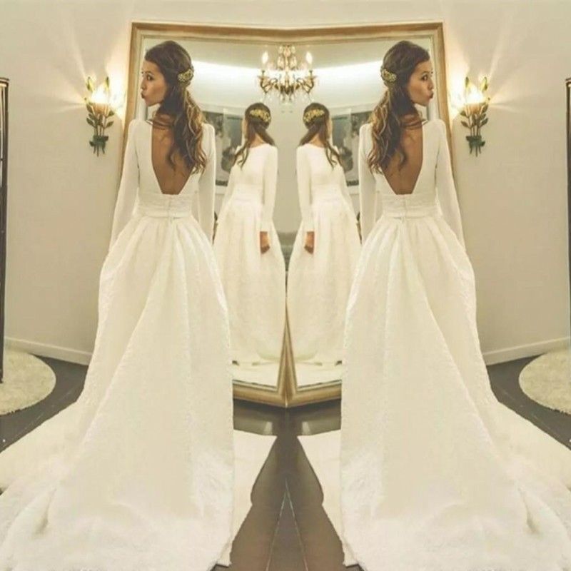 Discount Vintage Long Sleeves Wedding Dresses Cheap Low Back Sexy Low Back Satin Wedding Dress