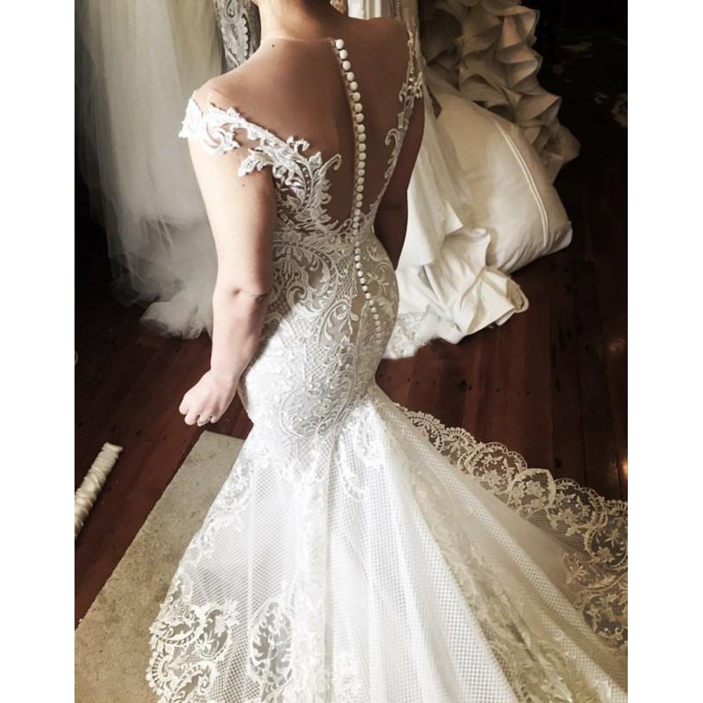 Elegant Sweetheart Court Train Mermaid Wedding Dress With Lace Low Cut Mermaid Wedding Dress