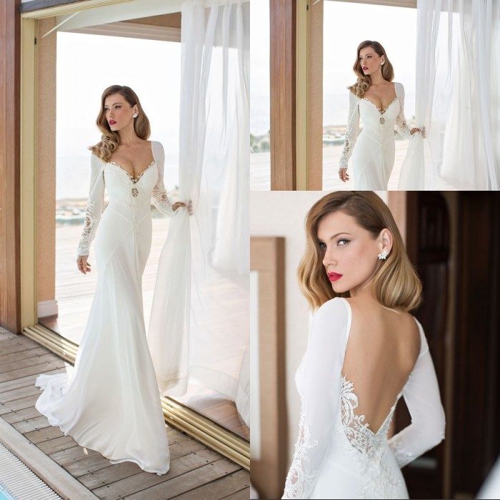 Mermaid V Neck Court Train Low Cut White Satin Wedding Dress With Low Cut Mermaid Wedding Dress