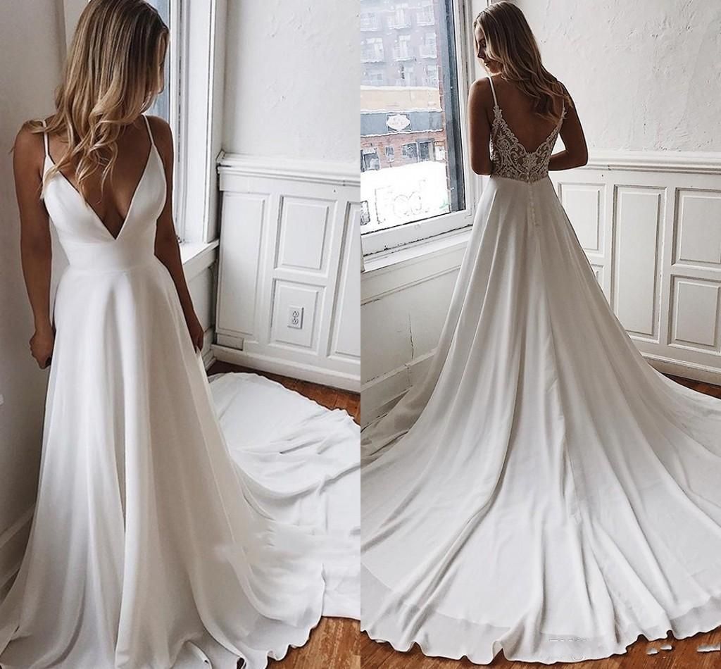 Low Back Deep V Cut Lace Wedding Dress Beach Wedding Dress Casual Low Cut V Back Wedding Dresses