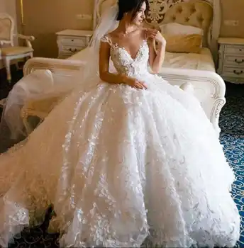 2020 3d Floral Appliques Ball Gown Wedding Dresses Sheer Jewel Luxury Arabic Wedding Dresses