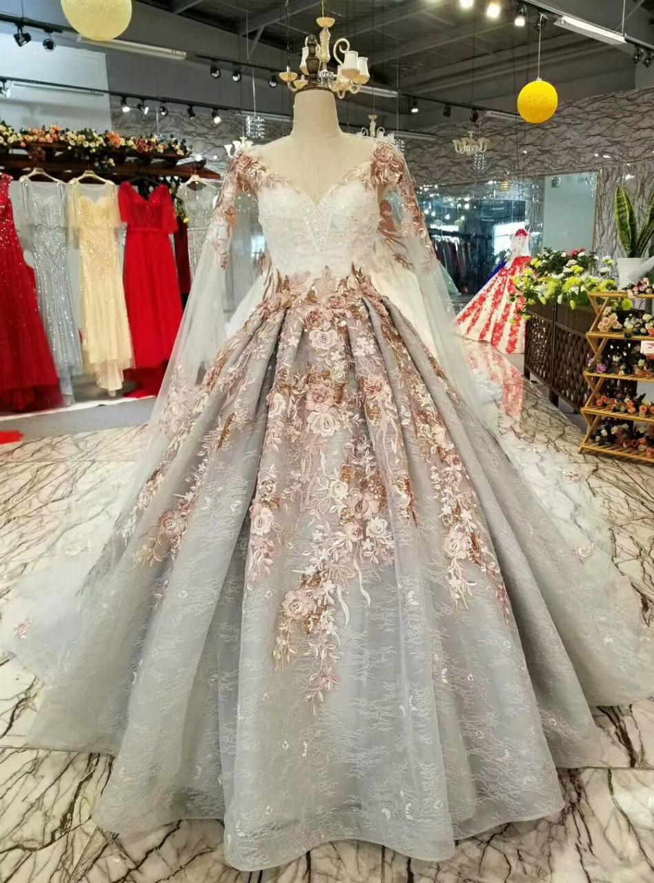 2020 Grey High End Long Sleeves Wedding Dresses Luxury Sparkle Luxury High End Wedding Dresses