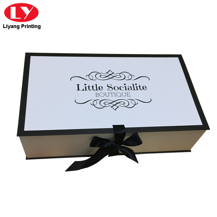 Custom Floral Printing Luxury Paper Lid And Base Ribbon Band Luxury Wedding Dress Box