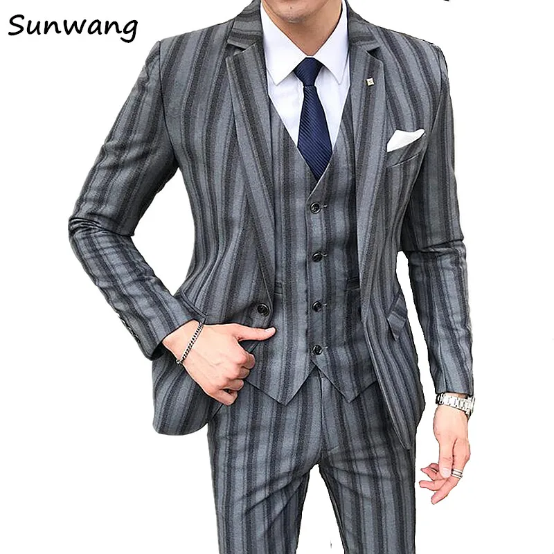 New Arrived Fashion Men Striped Suits Brand Clothing High Quality Luxury Wedding Dresses For Men