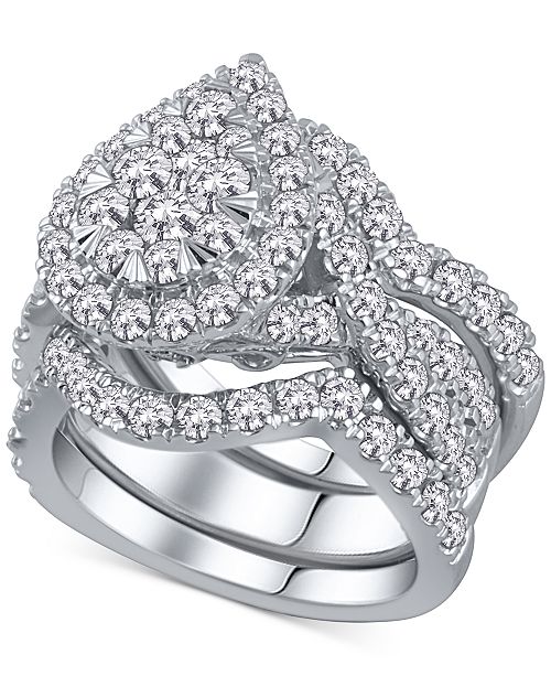 Macy S Diamond Pave Bridal Set 1 1 2 Ct T W In 14k White Gold Macy S Wedding Rings Sets