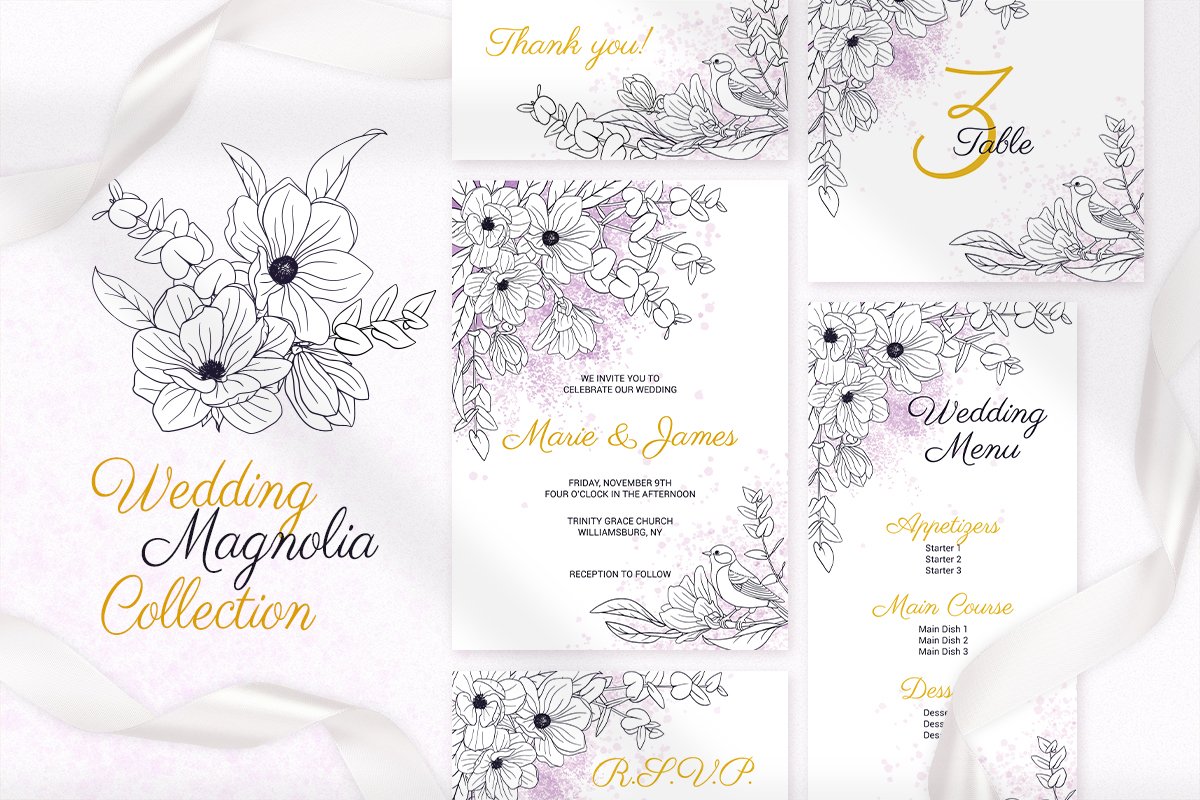 Elegant Magnolia Flower Wedding Invitations Pale Pink Blue Green Magnolia Wedding Invitations