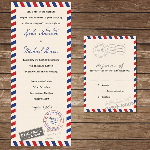 Printable Air Mail Wedding Invitation With Rsvp Card Digital Etsy Mail Wedding Invitation