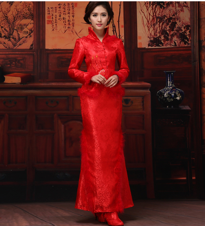 Chinese Vintage Lace Wedding Bridal Dress Cheongsam Mandarin Mandarin Neckline Wedding Dresses