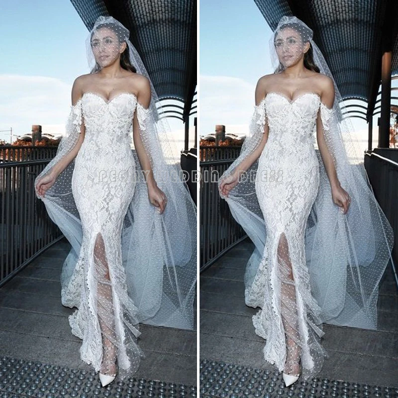 Glamorous Beaded Lace Wedding Dresses Beautiful Slit Sweetheart Mermaid Glamorous Beautiful Wedding Dresses