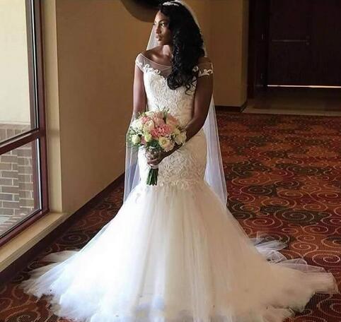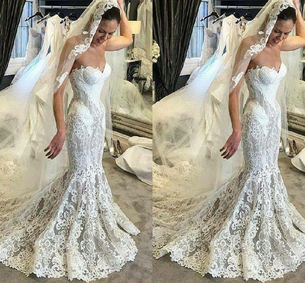 2018 Plus Size Mermaid Wedding Dresses Bridal Gown Vintage Lace Mermaid Glamorous Wedding Dresses