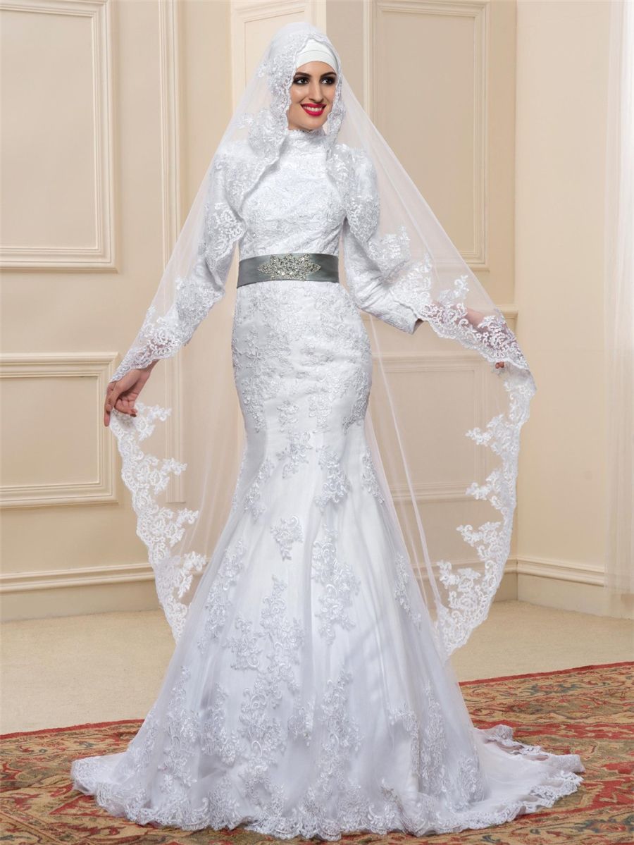Elegant Arabic Long Sleeves High Neck Mermaid Wedding Dress With Mermaid High Neck Long Sleeve Wedding Dresses