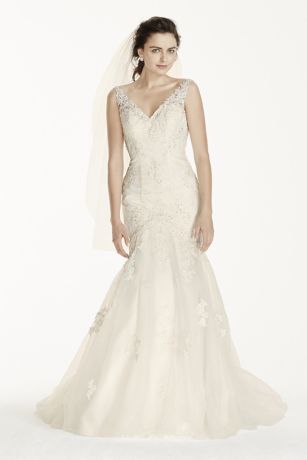 Petite Jewel Mermaid Wedding Dress With Open Back David S Bridal Mermaid Jeweled Wedding Dress