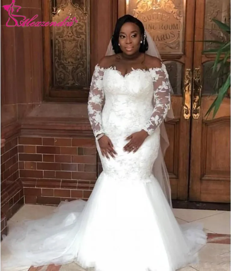 Elegant White Lace Wedding Dresses Mermaid Long Sleeves Wedding Mermaid Long Sleeve Elegant Wedding Dresses