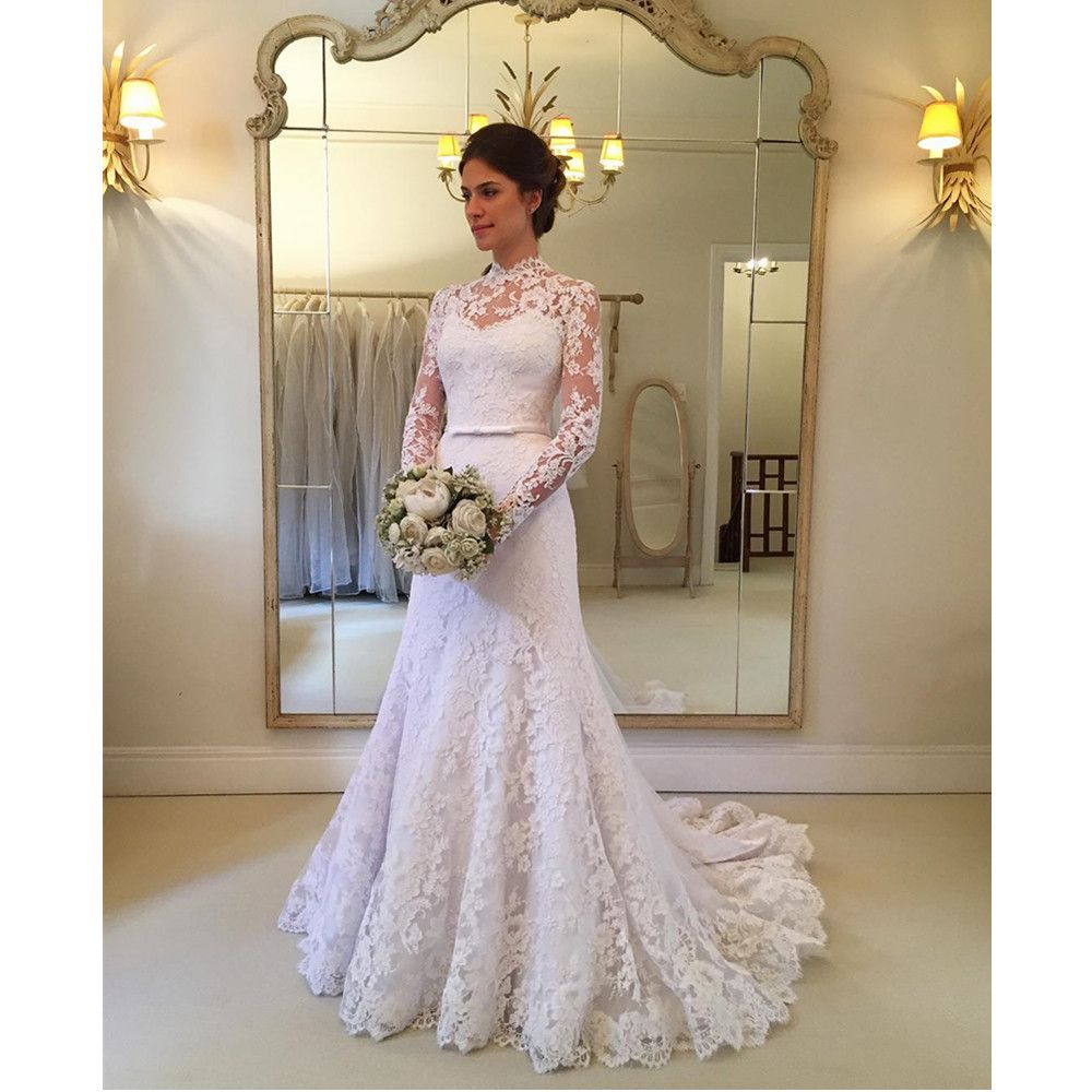 White Collar Wedding Dresses Fashion Dresses Mermaid Long Sleeve High Neck Wedding Dress