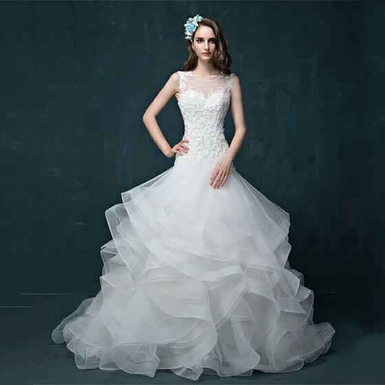 Shop Lace Hollow Out Bridal Gowns Organza Wedding Dress White Mermaid Organza Wedding Dress