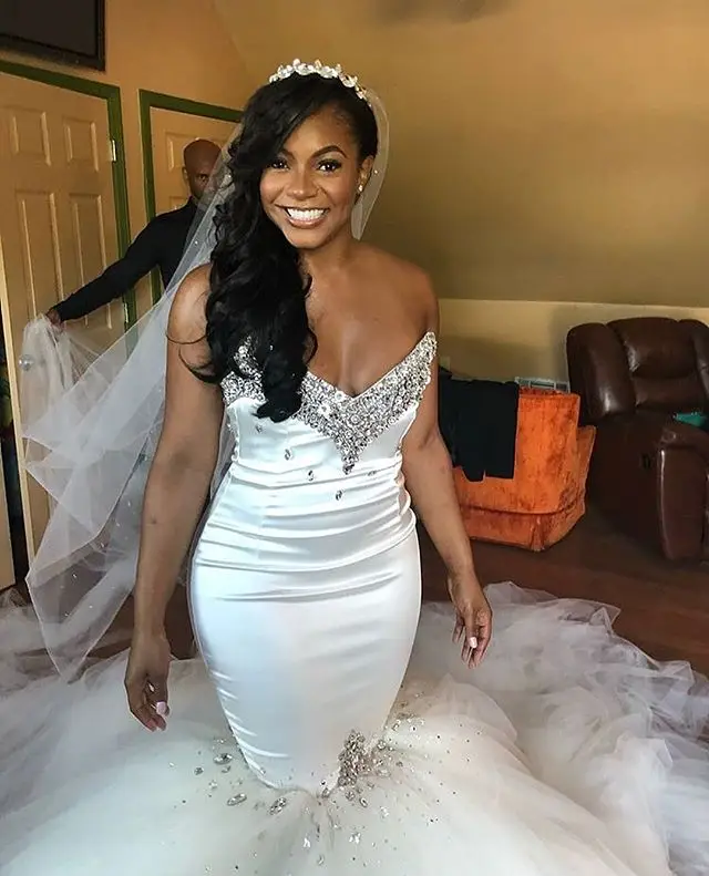 Beach Plus Size Mermaid Wedding Dress 2019 Vestido De Noiva Mermaid Plus Size Diamond Wedding Dresses