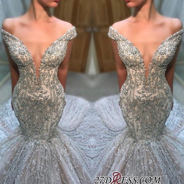 Bling Bling Mermaid Wedding Dresses Sexy Mermaid Deep V Neckline Mermaid Rhinestone Wedding Dress